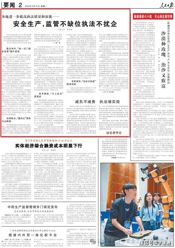 同时,规范执法不是不执法,严格执法要不断改进方式方法,让执法既有力度又有温度。过去,部分地区的安全生产检查存在频次过高、程序繁琐、标准不一等问题,企业疲于应付,反而分散了抓实安全生产的精力。如今,对守法者无事不扰、让违法者敬法畏法,“该宽的宽,该严的严”,安全生产监管执法“刚柔并济”,就能全面增强安全生产执法的精准性、科学性、有效性。